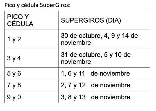 Hasta el 14 de noviembre se realizará la entrega de pagos del subsidio Colombia Mayor, décimo ciclo, a las personas bancarizadas, y por giro a través de SuperGiros y Efecty. La distribución se llevará a cabo considerando el pico y cédula establecido por las entidades correspondientes.