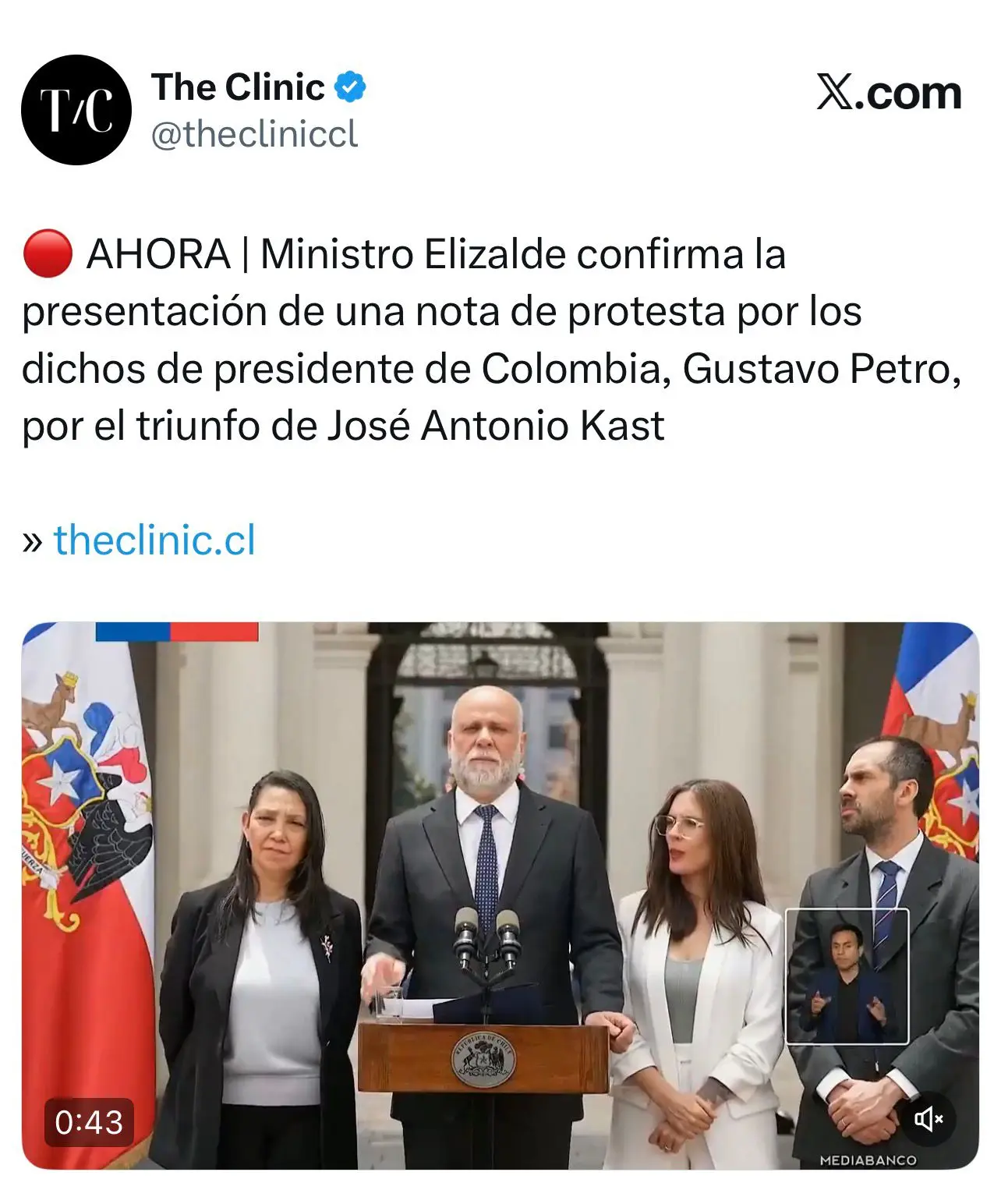 Los pronunciamientos de Petro en su X cuando se conoció la victoria de José Antonio Kast como Presidente de Chile, producen más incertidumbres que certezas. “Vienen los vientos de la muerte”, resaltaron medios de comunicación en Colombia y Chile.