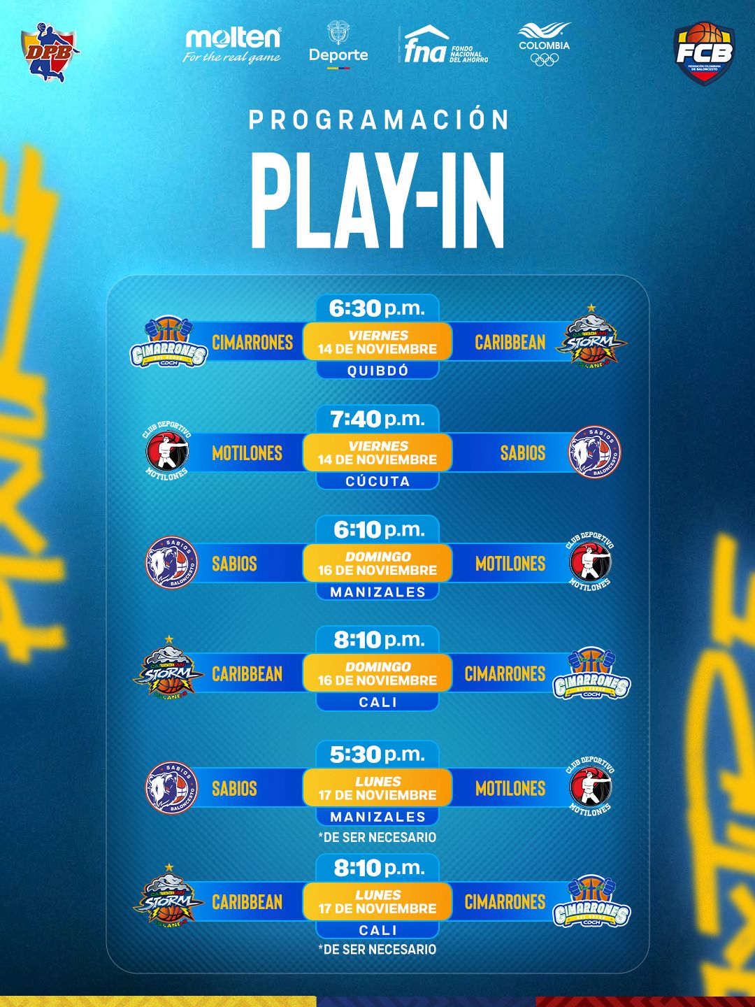 La emoción comenzará el viernes 14 de noviembre con los primeros juegos del Play-In: Cimarrones vs Caribbean Storm a las 6:30 p.m. y Motilones vs Sabios a las 7:40 p.m.