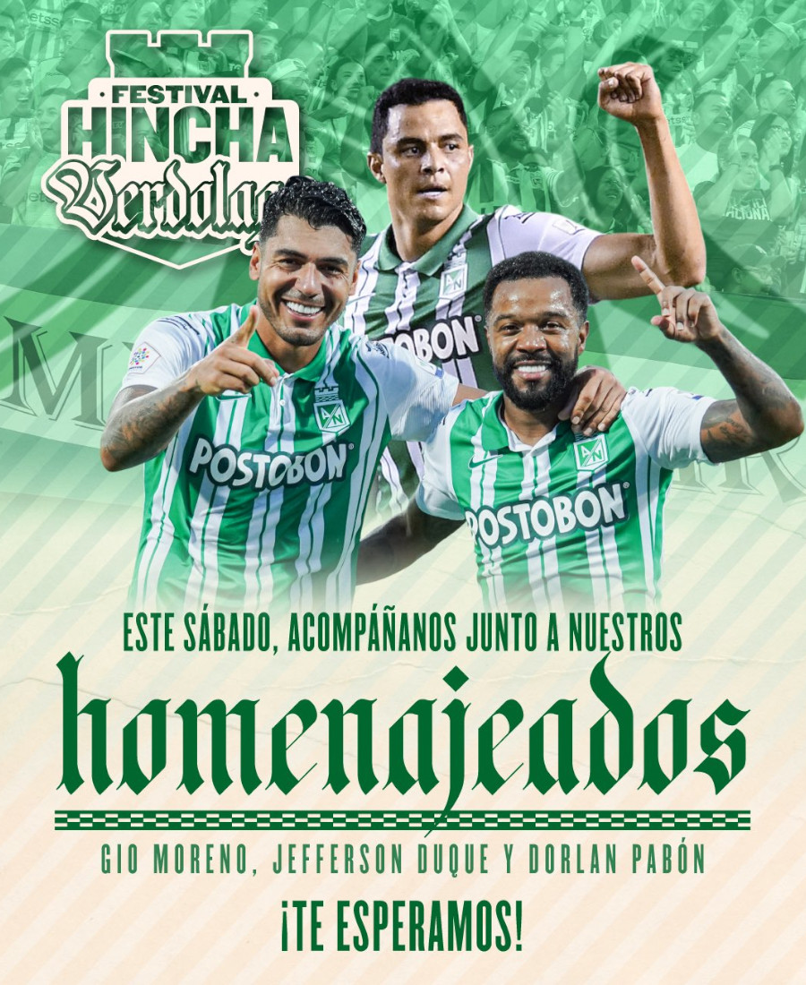 Tras los homenajes, la fiesta continuará con un momento muy especial: el Lanzamiento de «Suena Verdolaga» – Canción Atlético Nacional a las 3:30 PM, un nuevo himno para impulsar al equipo.