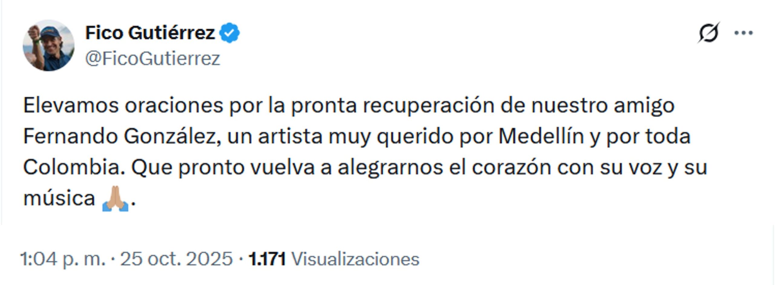 Resumen: La noticia generó una rápida reacción en la esfera pública. El alcalde de Medellín, Fico Gutiérrez, se pronunció a través de sus redes sociales, enviando un mensaje de apoyo y esperanza: