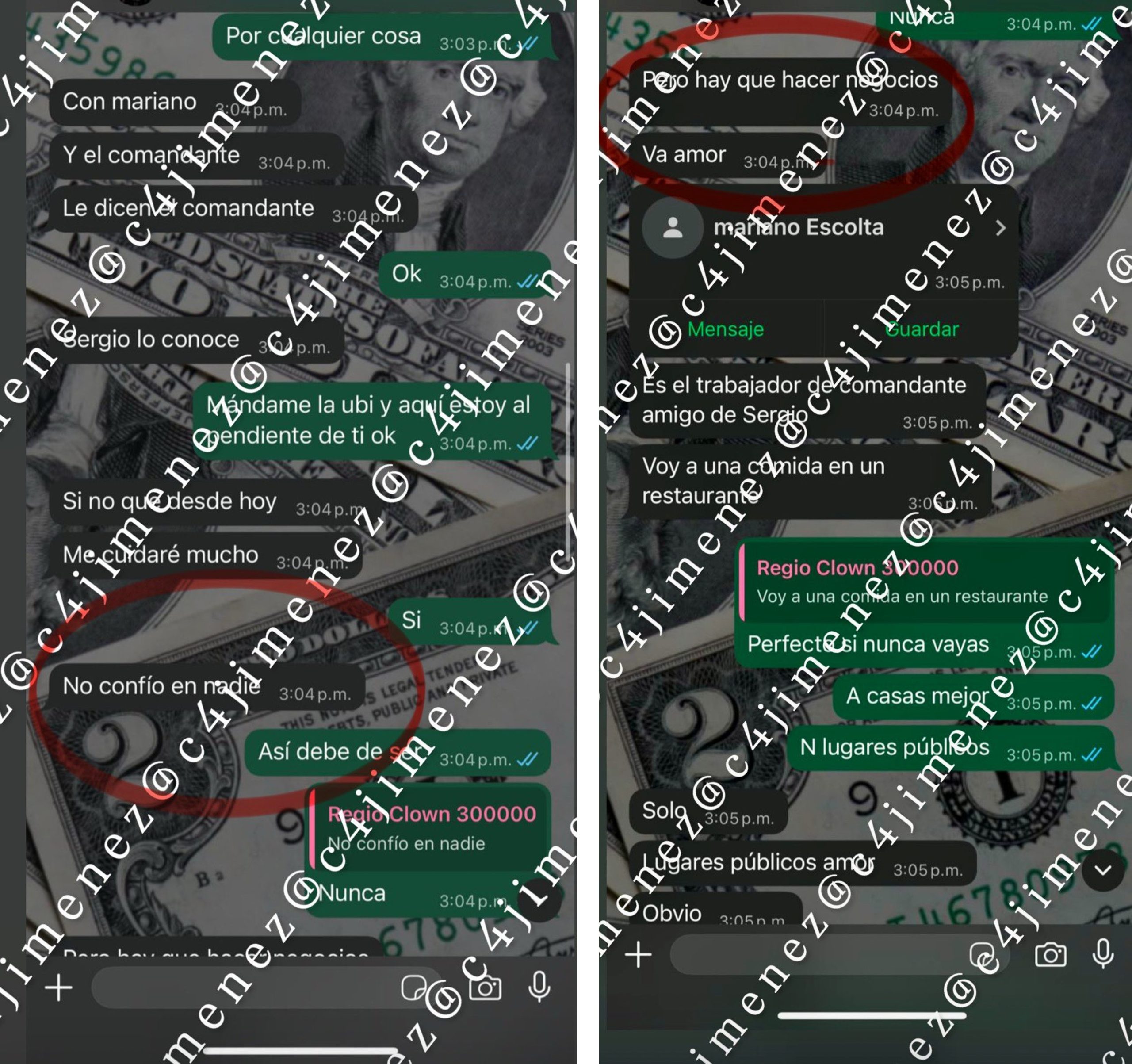 Últimos mensajes presuntamente salidos del whatsapp de Dj Regio Clownn. Foto @c4jimenez