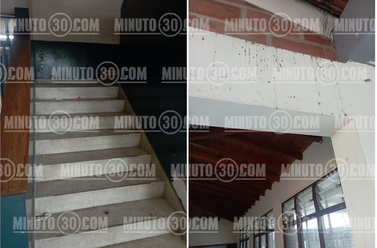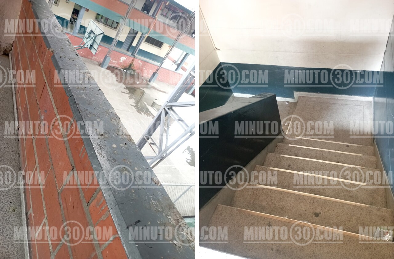 Escalas y muros sucios en la Institución Educativa La Trinidad, en Copacabana. Foto: Cortesía