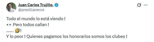 Luego de un emoji de risa, agregó que: “Y lo peor, quienes pagamos los honorarios somos los clubes”.