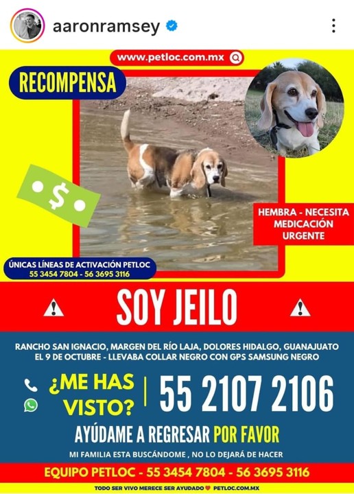 Halo, la perrita que ha acompañado a Ramsey por más de diez años, desapareció el pasado 9 de octubre. Fue dejada en una guardería ubicada en San Miguel de Allende, Guanajuato, donde presuntamente se extravió en circunstancias que aun eswtán por esclarecer.