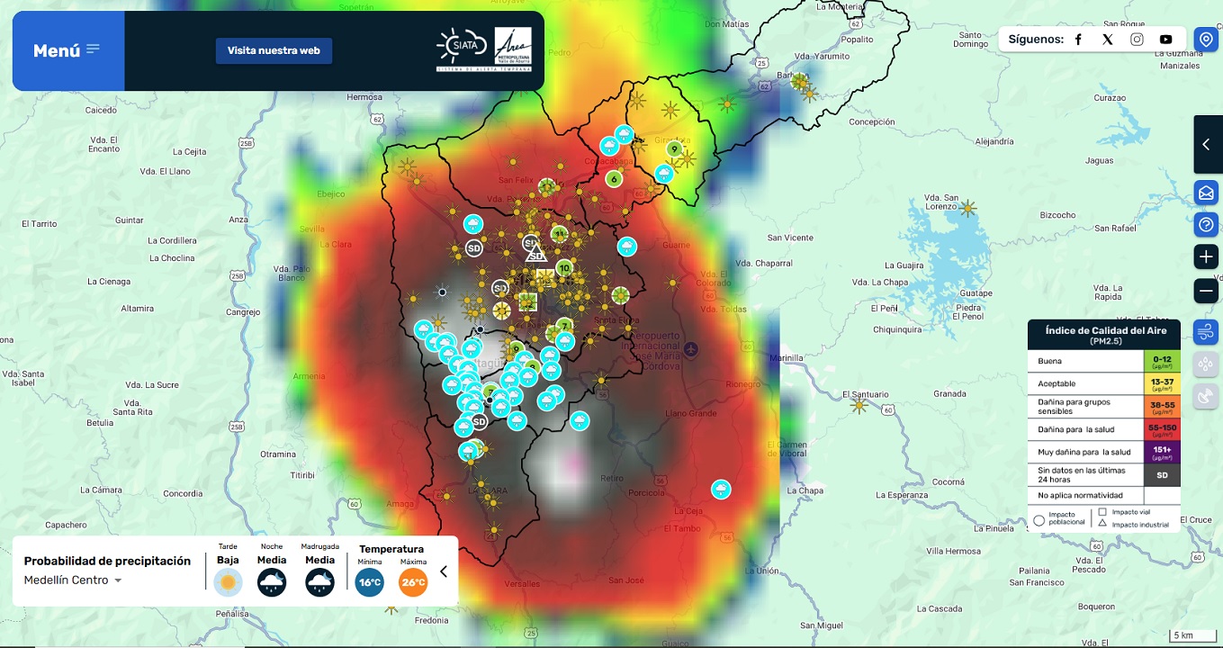 Sobre las 3 de la tarde, consultando el Siata, se reporta que llueve en todo el territorio.