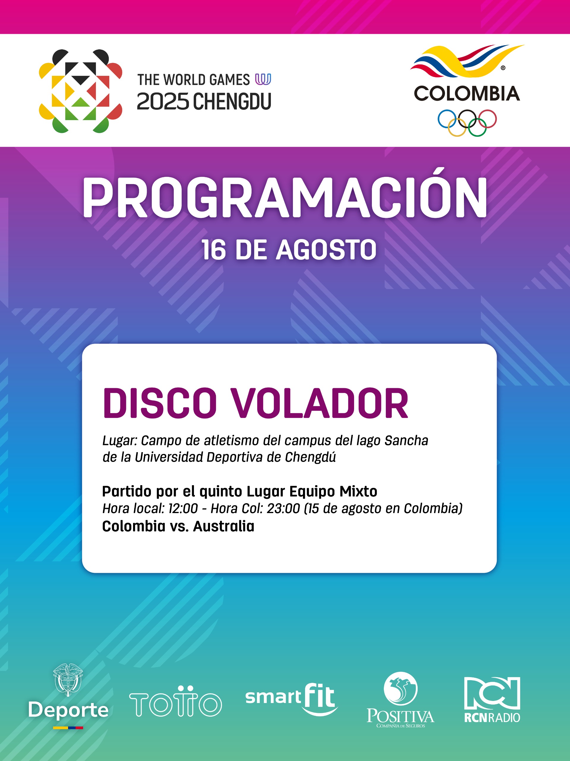 En la programación de este sábado, Colombia se mide ante Australia en disco volador por el quinto lugar de #TWG2025.#ColombiaEnTWG pic.twitter.com/NFAN8R7GvH