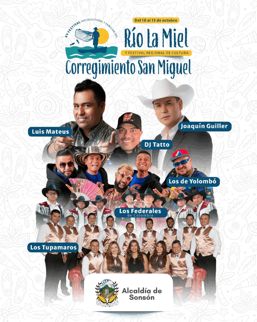 Del 10 al 13 de octubre, el corregimiento San Miguel, en el municipio de Sonsón, será escenario del XV Festival Sociocultural y Familiar del Río La Miel y del Festival Regional de Cultura, una cita que combina música, arte, deporte y tradición en torno a la identidad del territorio.
