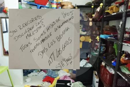 “Sin rencores, disculpen las molestias. Todos somos hijos de Dios, tenemos hambre. Lo sentimos de corazón. Dios los bendiga. Att: Los Gatos”, se lee en una de las paredes del Centro de Desarrollo Infantil.