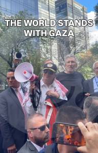 ”El pueblo, unido, jamás será vencido”; es lo que se puede escuchar en las protestas del presidente Gustavo Petro junto a Roger Waters, cofundador de la banda Pink Floyd en Nueva York, más específicamente en Times Square a favor de lo que sucede en la Franja de Gaza.