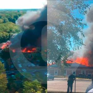 Imágenes del lugar mostraban a socorristas llevando a personas en camillas y una gran columna de humo oscuro salir de la Iglesia de Jesucristo de los Santos de los Últimos Días, reducida a cenizas.