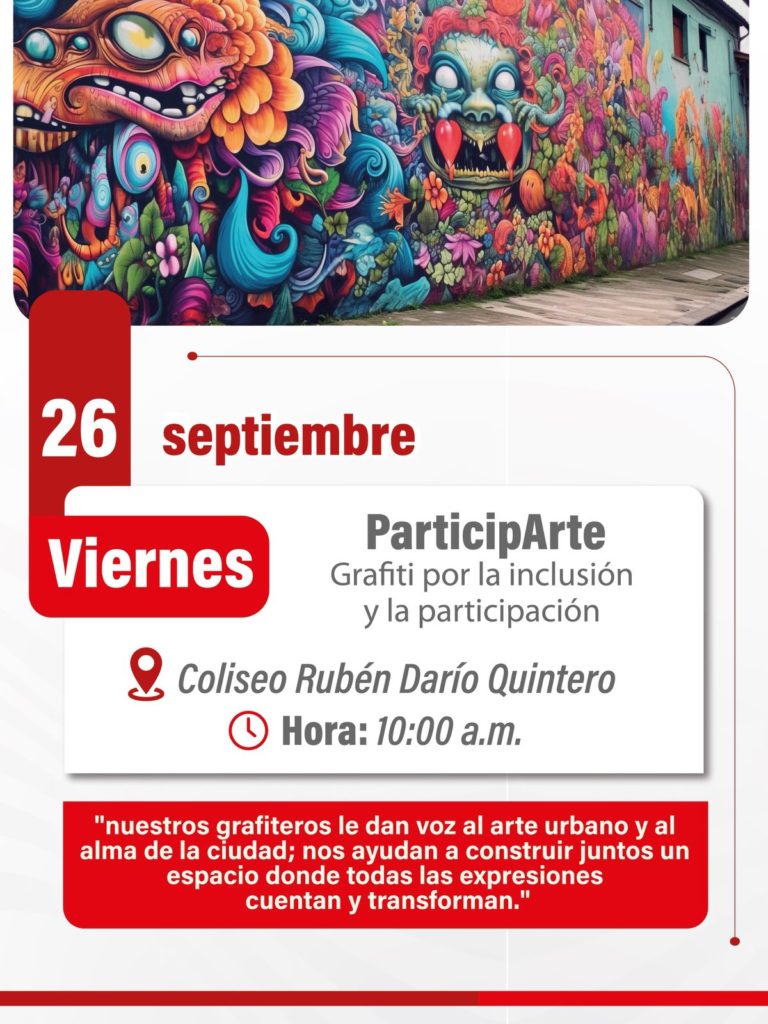 - Jornada de arte urbano con grafiteros locales para promover la inclusión y la participación ciudadana.