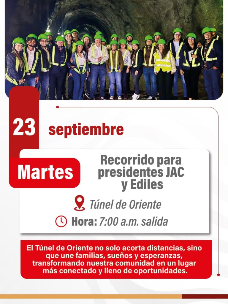 - Visita guiada al Túnel de Oriente para conocer su impacto en la conectividad y el desarrollo regional.