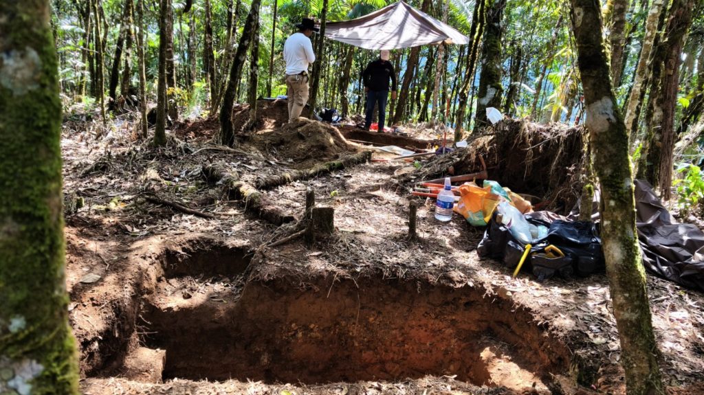 Durante la intervención forense, los equipos especializados localizaron dos fosas: una individual y otra colectiva. En la primera fue encontrado un cuerpo esqueletizado junto con prendas y otros elementos asociados. En la segunda, se recuperaron dos cuerpos más, junto a pertenencias personales, entre ellas un carné estudiantil que permitió orientar la posible identidad de una de las víctimas, reportada como desaparecida en Medellín.